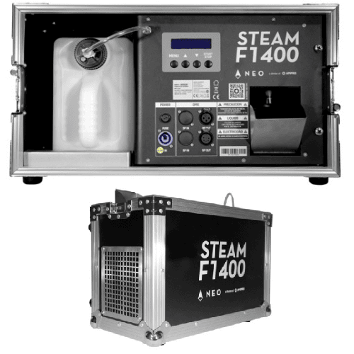Steam F1400 es una robusta máquina de faze profesional de alto desempeño con una salida de 15.000 pies cúbicos por minuto. Entre sus puntos más altos, se encuentra su tiempo de precalentamiento, el cual es de 60 segundos, algo realmente destacable para una maquina de faze de gran envergadura. Con un ajuste de caudal que va desde el 5% al 100%, Steam F1400 cuenta con una salida suave y estable que se adapta a cualquier requerimiento e inclusive, en intervalos de más de 30 segundos, limpia los conductos de manera automática, garantizando un funcionamiento ideal en todo momento. Fácil de operar y construida dentro de un flight case para facilitar su transporte, Steam F1400 tiene además un tanque de 6 litros de capacidad, convirtiéndose en una alternativa top para aplicaciones profesionales de gran escala.